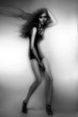 moda młody grecki amerykański model gospodarstwa czarnej tkaniny Przywiana przez wiatr na białym tle czarny Studio Zdjęcia