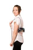 Zdjęcie "Kobieta ubrana puste niebieska koszula trzymanie aparatu" może być wykorzystywane do celów osobistych i komercyjnych zgodnie z warunkami zakupionej licencji Royalty-free. Obraz jest dostępny do pobrania w jakości wysokiej rozdzielczości do 5760x3840.