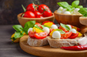 Tradycyjny włoski Panzanella Sałatka ze świeżych pomidorów i chrupiącym pieczywem