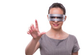 Futurystycznej koncepcji z techno cyber kobieta na białym tle
