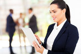młoda kobieta przy użyciu komputera typu tablet w biurze