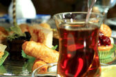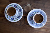 tradycyjną turecką kawę, serwowane w Pucharze na drewnianym stole