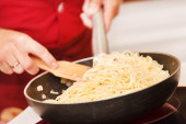 Kobieta, jedzenie pyszne makarony