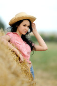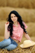 piękna dziewczyna z przyrodą w sianie