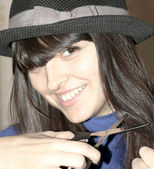 młody wieś kobieta w kowboj kapelusz gra w panpipe