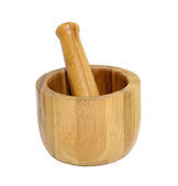 drewniany tłuczek i moździerz na białym tle ze ścieżką przycinającą