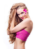 dziewczyna z sztuki Wizaż i długie ciemne włosy kręcone