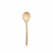 Widok z góry jasny pusty drewnianą łyżką na białym tle. Zapisano na z
