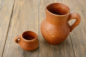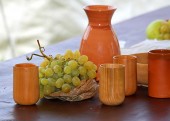 Podniósł butelkę wina i tradycyjne jag z ozdoby na stolik w restauracji