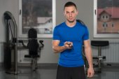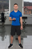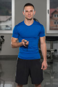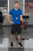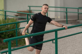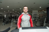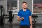 Muskularny mężczyzna w stroju sportowego w centrum Fitness