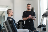 Zdjęcie "Osobisty trener ma notatki w schowku" może być wykorzystywane do celów osobistych i komercyjnych zgodnie z warunkami zakupionej licencji Royalty-free. Obraz jest dostępny do pobrania w jakości wysokiej rozdzielczości do 5760x3840.