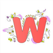 w, alfabet kwiat na białym tle na białym płomieniem