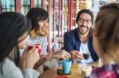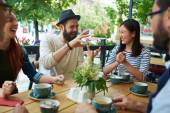 Młodzi przyjaciele w kawiarni na świeżym powietrzu