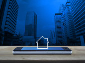 Młot i klucz z ikoną domu na nowoczesny inteligentny telefon ekran o