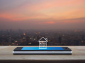 Zdjęcie "Młot i klucz z ikoną domu na nowoczesny inteligentny telefon ekran o" może być wykorzystywane do celów osobistych i komercyjnych zgodnie z warunkami zakupionej licencji Royalty-free. Obraz jest dostępny do pobrania w jakości wysokiej rozdzielczości do 5760x3840.