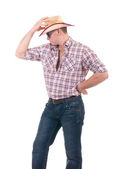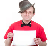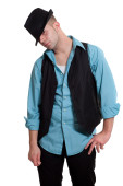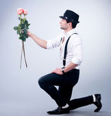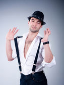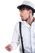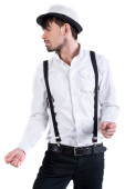 Walentynki romantyczny mężczyzna w kapeluszu i szelki