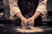kobieta ręce wyrabiania ciasta.