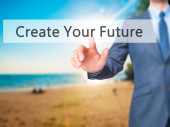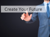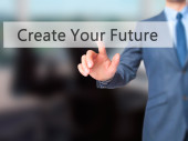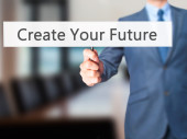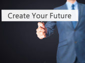 Kreuj swoją przyszłość - biznesmen prasy na cyfrowy ekran.