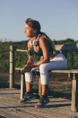 Portret młodej kobiety atrakcyjne w sportowej, słuchanie