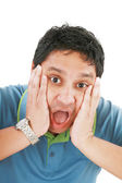 biznes człowiek krzyczący na komórkę telefon komórkowy, portret y