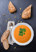 Zdjęcie "Zupa z dyni w misce biały na stole" może być wykorzystywane do celów osobistych i komercyjnych zgodnie z warunkami zakupionej licencji Royalty-free. Obraz jest dostępny do pobrania w jakości wysokiej rozdzielczości do 5760x3840.