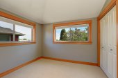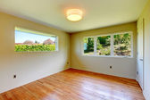 Wnętrze niebieskie pustym pokoju z drewnianą podłogę i wielu okien