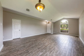 Zdjęcie "Otwórz plan kondygnacji. Pusty korytarz wnętrze z ciemny brąz podłogi. " może być wykorzystywane do celów osobistych i komercyjnych zgodnie z warunkami zakupionej licencji Royalty-free. Obraz jest dostępny do pobrania w jakości wysokiej rozdzielczości do 5760x3840.
