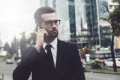 Zdjęcie "Biznesmen rozmawiający przez telefon komórkowy" może być wykorzystywane do celów osobistych i komercyjnych zgodnie z warunkami zakupionej licencji Royalty-free. Obraz jest dostępny do pobrania w jakości wysokiej rozdzielczości do 5760x3840.