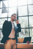 Zdjęcie "Biznesmen rozmawiający przez telefon komórkowy" może być wykorzystywane do celów osobistych i komercyjnych zgodnie z warunkami zakupionej licencji Royalty-free. Obraz jest dostępny do pobrania w jakości wysokiej rozdzielczości do 5760x3840.