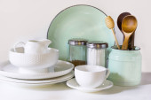 Zdjęcie "Sztućce, zastawa stołowa, naczynia i inne różne rzeczy na drewniany blat. Kuchnia Martwa Natura jako tło dla projektu. " może być wykorzystywane do celów osobistych i komercyjnych zgodnie z warunkami zakupionej licencji Royalty-free. Obraz jest dostępny do pobrania w jakości wysokiej rozdzielczości do 5760x3840.