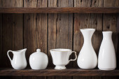 Sztućce, zastawa stołowa, naczynia i inne różne rzeczy na drewniany blat. Kuchnia Martwa Natura jako tło dla projektu.