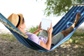 Zdjęcie "zrelaksowany Kobieta w hamaku" może być wykorzystywane do celów osobistych i komercyjnych zgodnie z warunkami zakupionej licencji Royalty-free. Obraz jest dostępny do pobrania w jakości wysokiej rozdzielczości do 5760x3840.