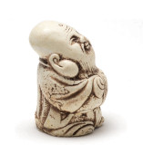 Netsuke wschód smoka, który pilnuje jajko. Na białym tle
