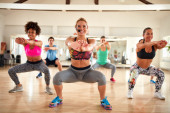 Instruktor kobiece Pokaż ćwiczenia do fitness Grupa