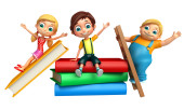 dziecko dziewczynka, chłopiec dziecko i słodkie dziecko z książki stosu i ołówek