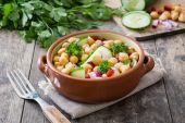 Ciecierzyca Sałatka brązowy miski na podłoże drewniane