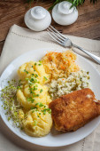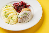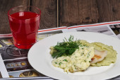 Grillowane kiełbaski i ziemniaki w szklance piwa