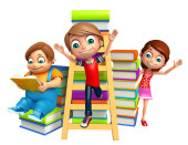 Dziecko chłopiec i dziewczynka z tabeli krzesło książki