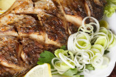 Soczysty pieczony wieprzowy z frytkami i przyprawy