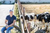 rolnik człowieka, praca na farmie z krów mlecznych