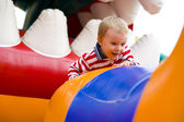 Ojciec uczy syna, aby przenieść w dół ze zjeżdżalniami dla dzieci