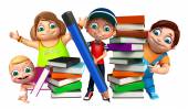 dziecko dziewczynka, chłopiec dziecko i słodkie dziecko z książki stosu i ołówek