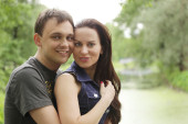 Kobieta i mężczyzna z różową wstążką, o uzdrowienie na Światowy dzień walki z rakiem