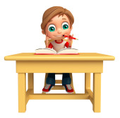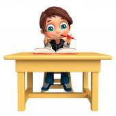 Chłopiec dziecko z książki i stół-krzesło