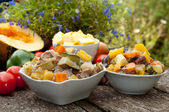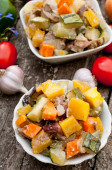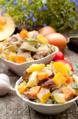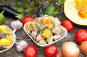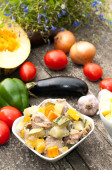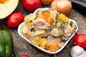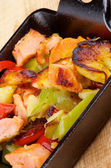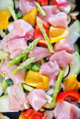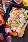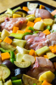 surowego kurczaka z warzywami z patelni