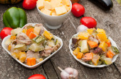 surowego kurczaka z warzywami z patelni