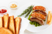 Piwo i kiełbasy z grilla. Tradycyjne menu Oktoberfest.