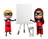 Superboy i Supergirl z książka pokładzie wyświetlacz
