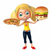 dziecko dziewczynka z Burger i Pizza