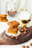 Czekoladowe domowe muesli z masłem orzechowym i gruszką